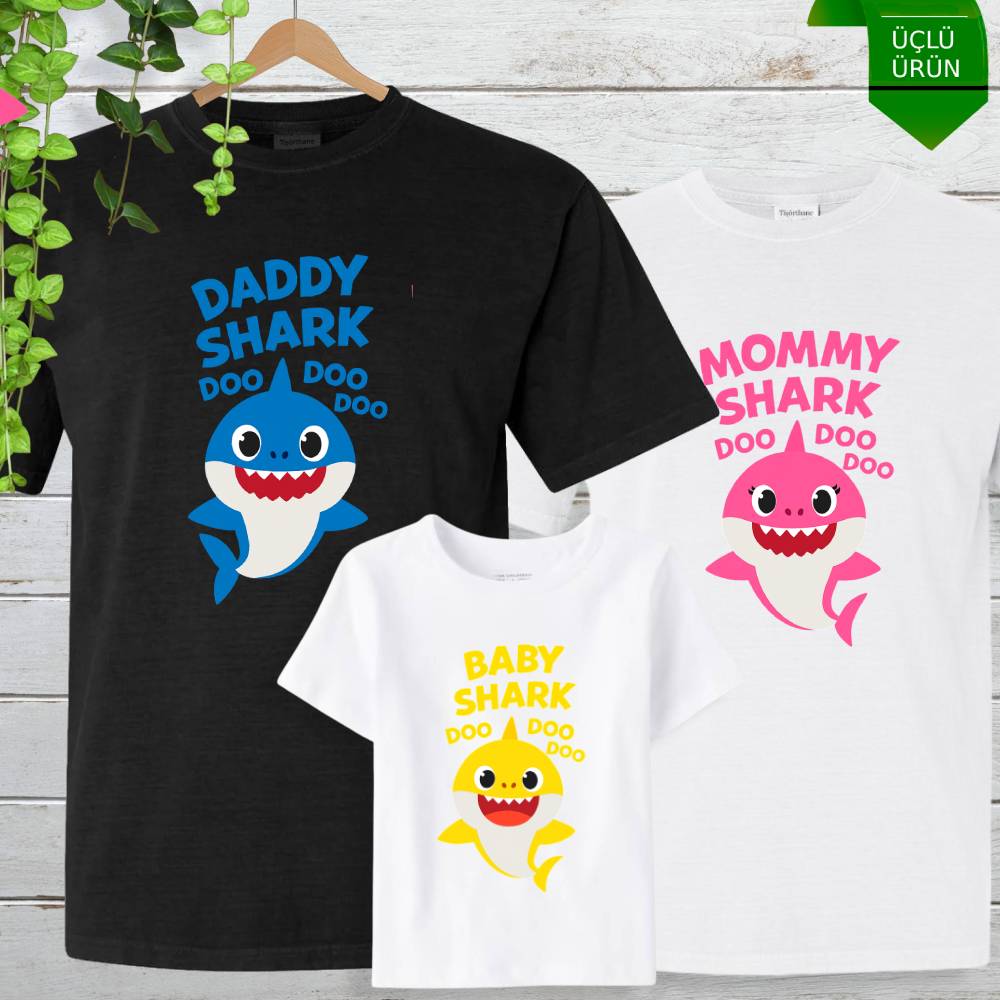 Anne Baba ve Bebek Köpekbalığı Tişört Kombini
