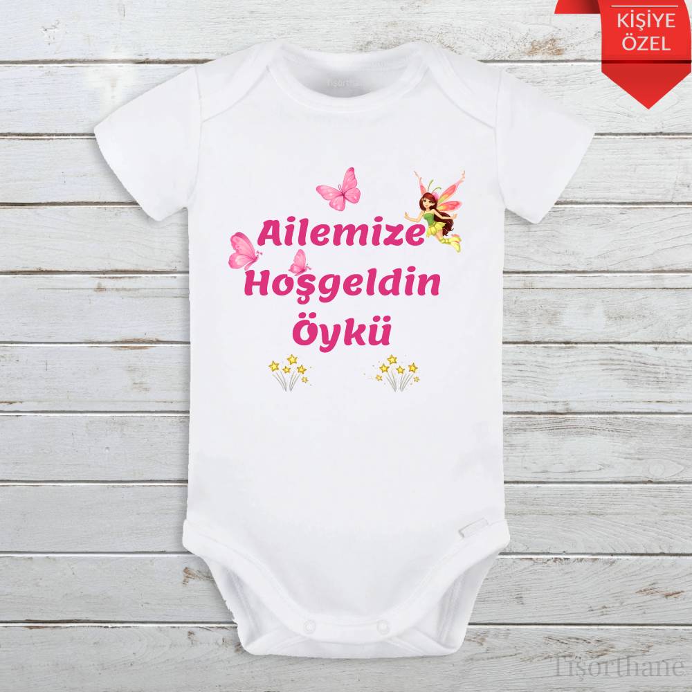 İsme Özel Ailemize Hoş Geldin Tasarımlı Zıbın